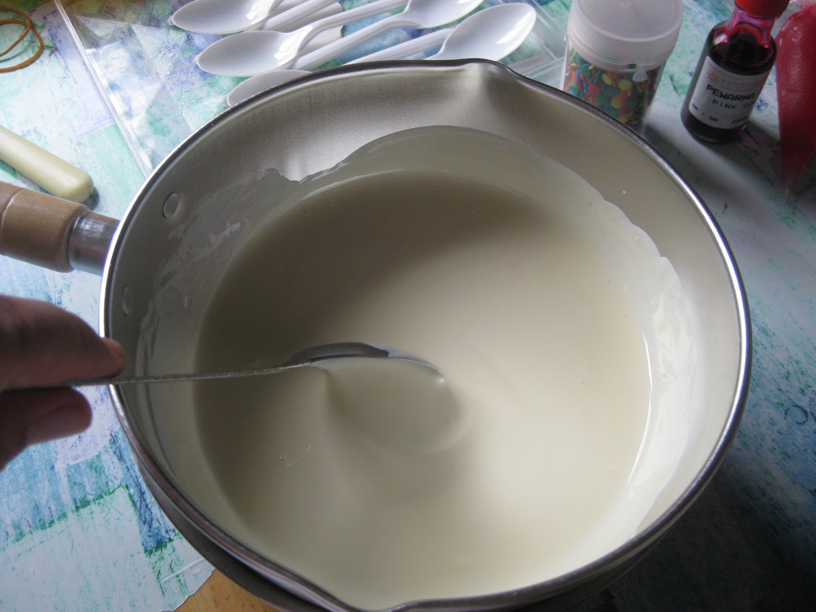 dapatkan coumpund choc depends on ur needs... kot nak bt white choc ke, dark ke, milk ke.. fyi, strawberry, orange, lemon choc sume ada di pasaran. tapi this time ku gunakan white sahaja... oh, compound choc ni bole didapati di mana2 kedai barang kek but i bought kat Bagus RM14.90 aje...